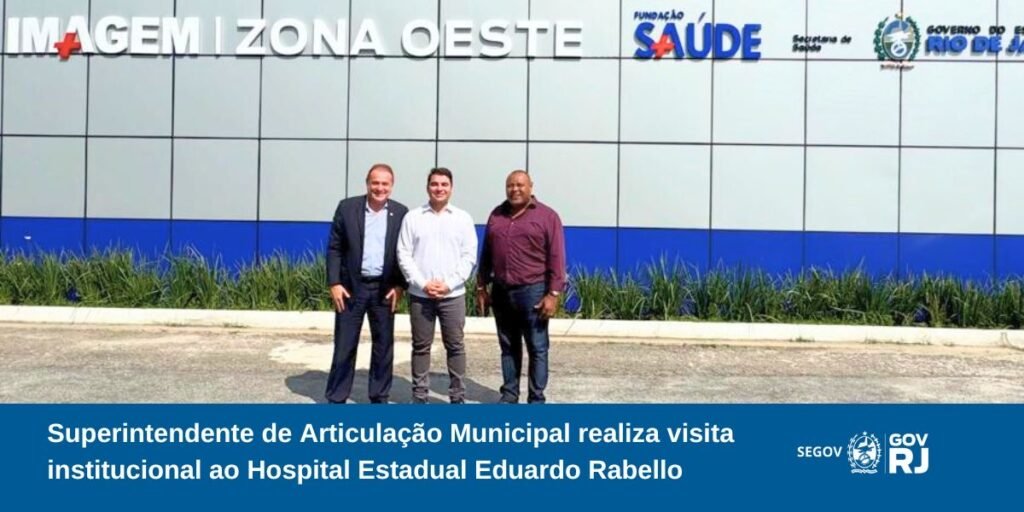 O Superintendente de Articulação Municipal, Márcio de Castro, realizou nesta semana uma visita institucional ao Hospital Estadual Eduardo Rabello, localizado na Zona Oeste do Rio de Janeiro. A agenda incluiu um encontro com o diretor da unidade, Bruno Chagas, referência na área de cirurgia bucomaxilofacial e gestão em saúde.