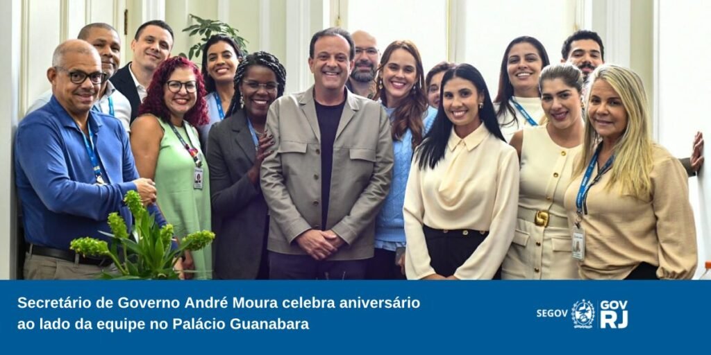 O aniversário do secretário de Governo, André Moura, foi marcado por um momento de confraternização e reconhecimento à sua trajetória pública, nesta semana, na sede do Palácio Guanabara, no Rio de Janeiro. Cercado por assessores diretos e integrantes da equipe da Secretaria de Governo, o encontro reforçou o clima de união e parceria que caracteriza o trabalho da chamada “família Segov”.